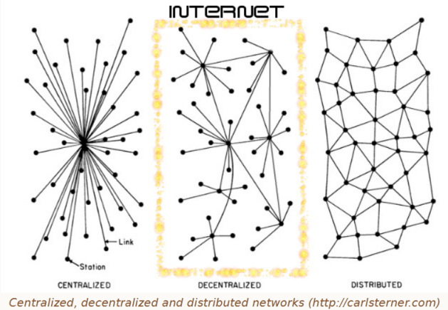 Internet est historiquement et fondamentalement décentralisé, comme l’illustre la photo suivante :